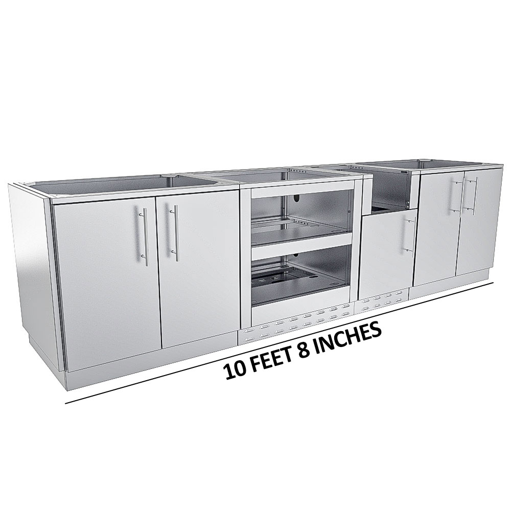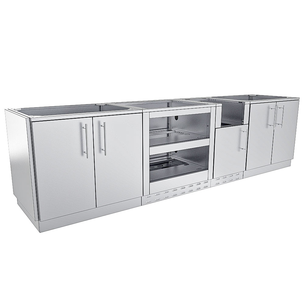 The Galley Base Cabinet Island Package SBP‑GALLEY/BASE is your go‑to solution when you want a clean, efficient prep island built for outdoor hospitality. From its outset, this Galley Base Cabinet Island Package delivers 10′8″ of 304 stainless steel modular base cabinetry designed for mixing, prepping, chilling, and serving with professional flow and rugged durability.