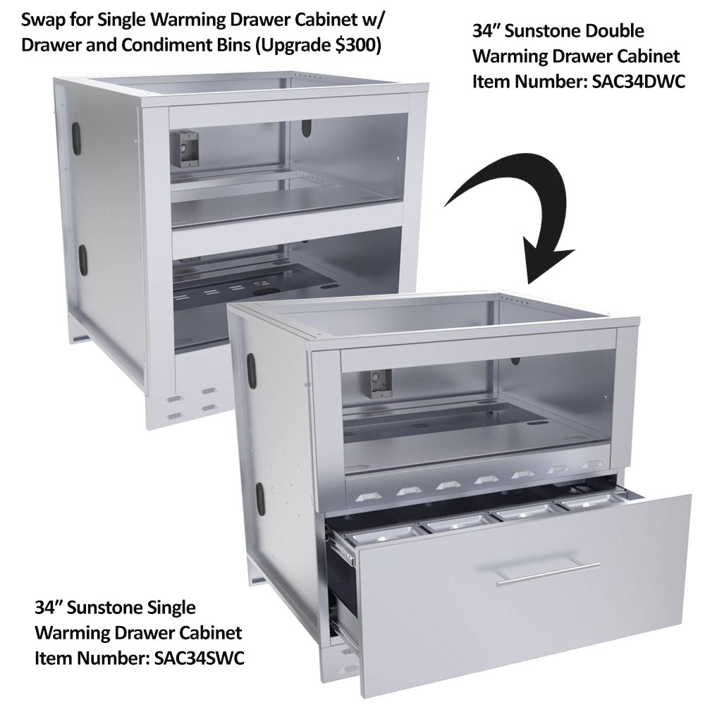 ✔ Swap SAC34DWC for SAC34SWC (single warming drawer with bottom drawer + condiment bins) at ~$300 upgrade