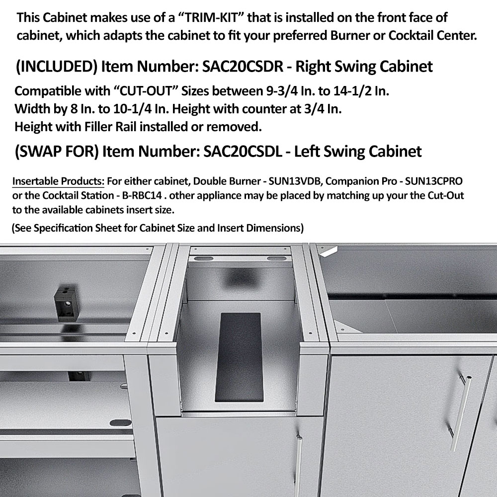 • Designed to house ice chests, large sinks, or storage bins - (1) 20″ Left‑Swing Door Cabinet — SAC20CSDL