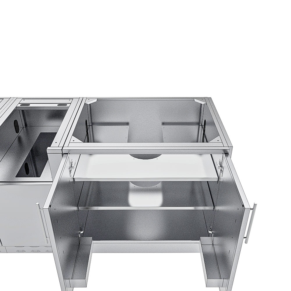 Every module in the Galley Base Cabinet Island Package is built to support high use and flexible appliance pairing. Whether you want warming drawers, ice bins, bar sinks, or accessories, this package gives you the frame to customize. All cabinets and panels are made from 304 stainless steel, matching finishes and installation features ensure cohesion and value.