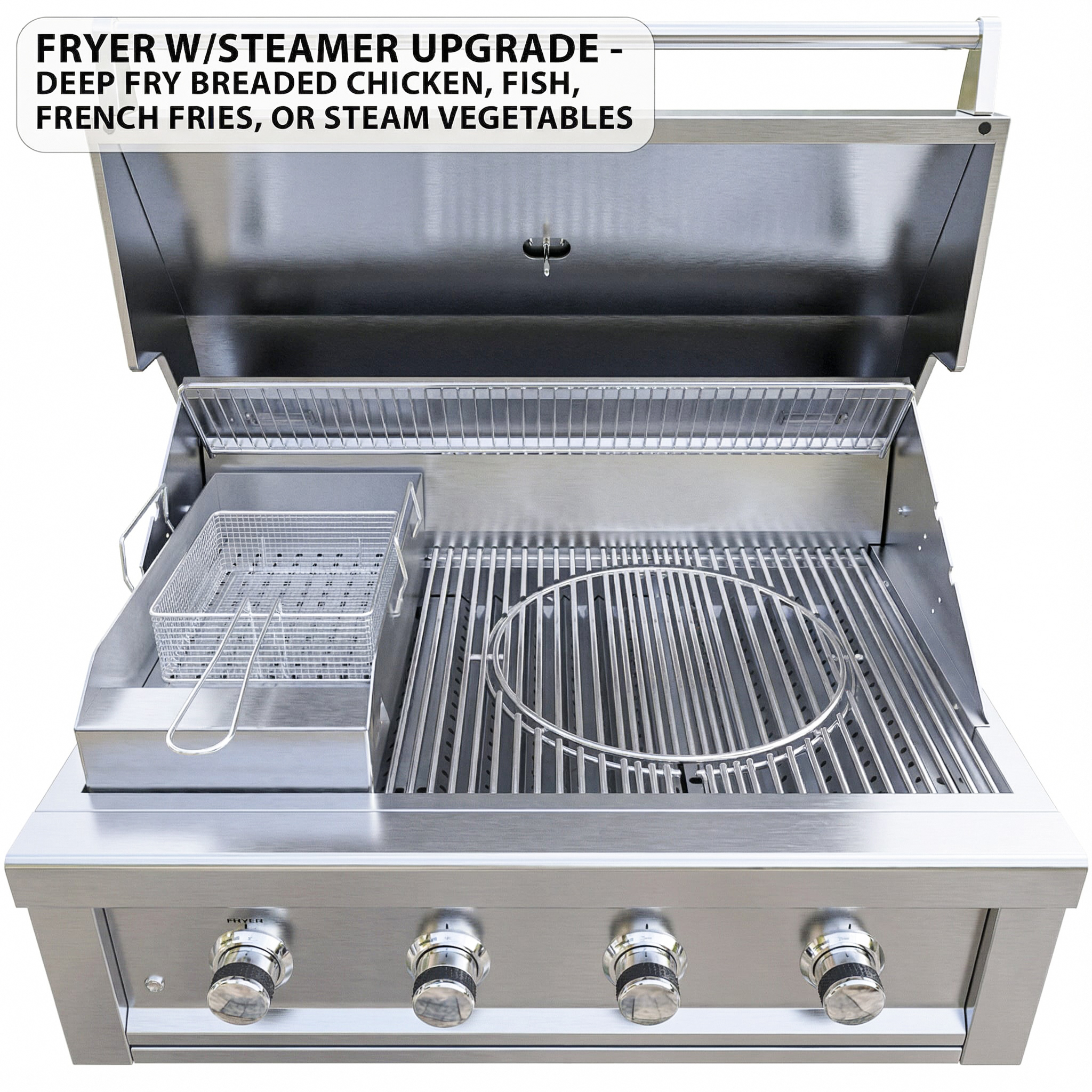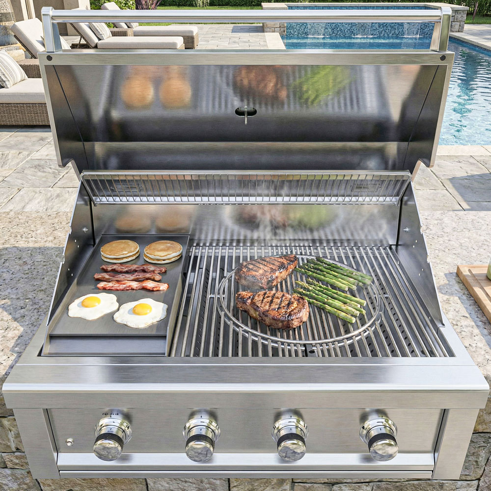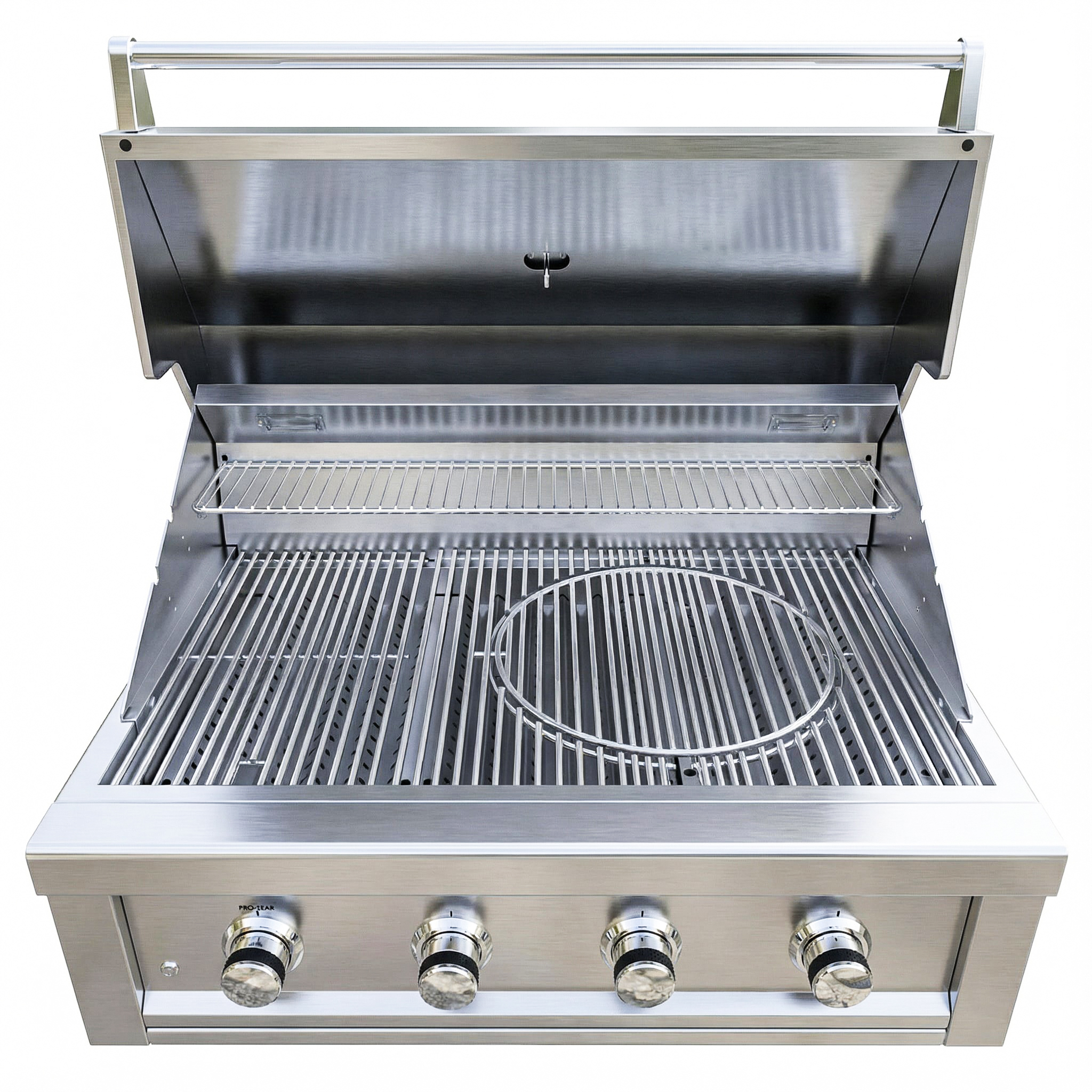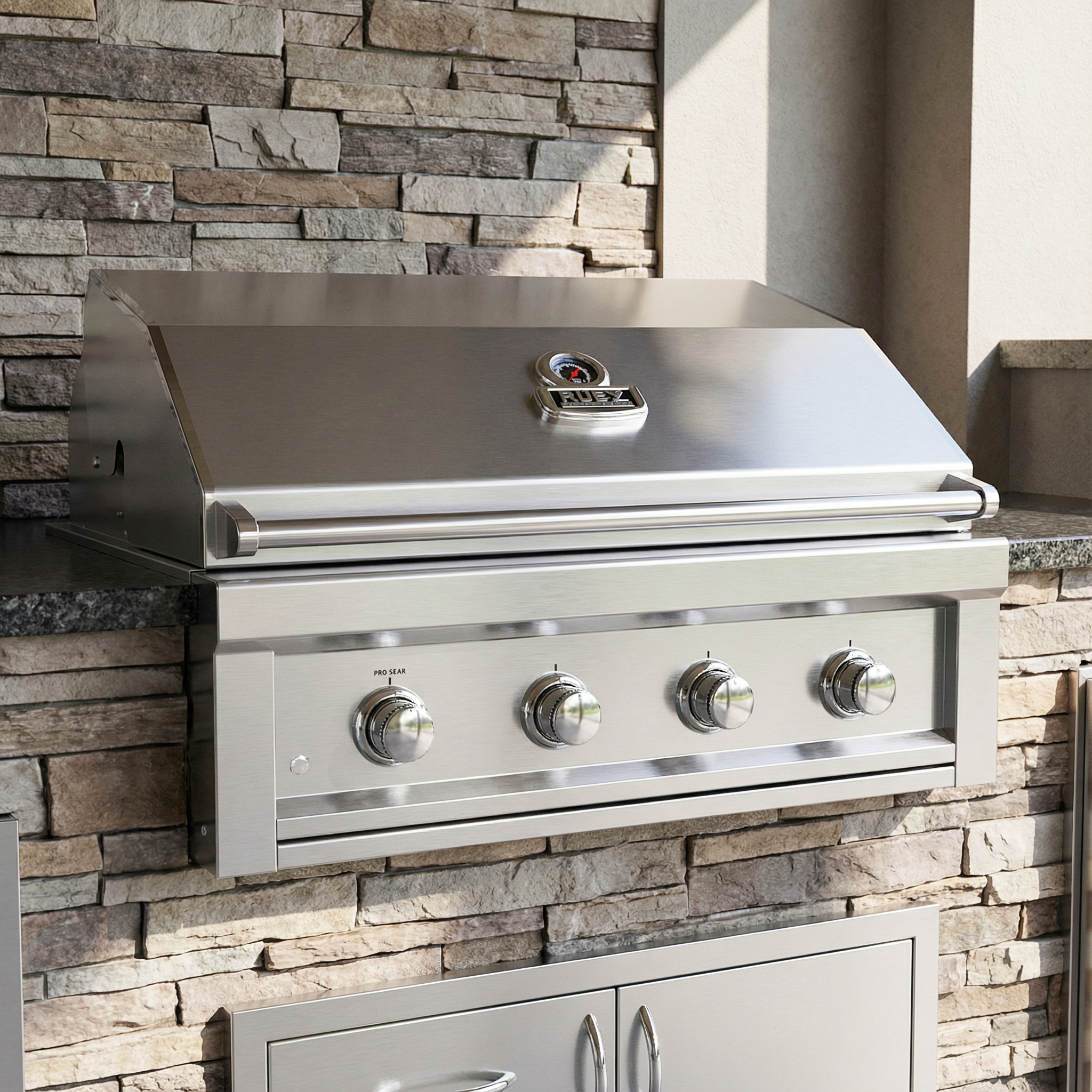 The Ruby Series 4‑Burner Pro‑Sear 36″ (RUBY4B) offers premium grilling capability in a compact 36‑inch footprint. It balances high performance with flexibility—capable of everyday grilled meals and advanced cookouts alike. With full stainless steel build and integrated lighting, it immediately upgrades the look and functionality of your outdoor kitchen. Supporting accessory upgrades ensures this grill will grow with your cooking ambitions.