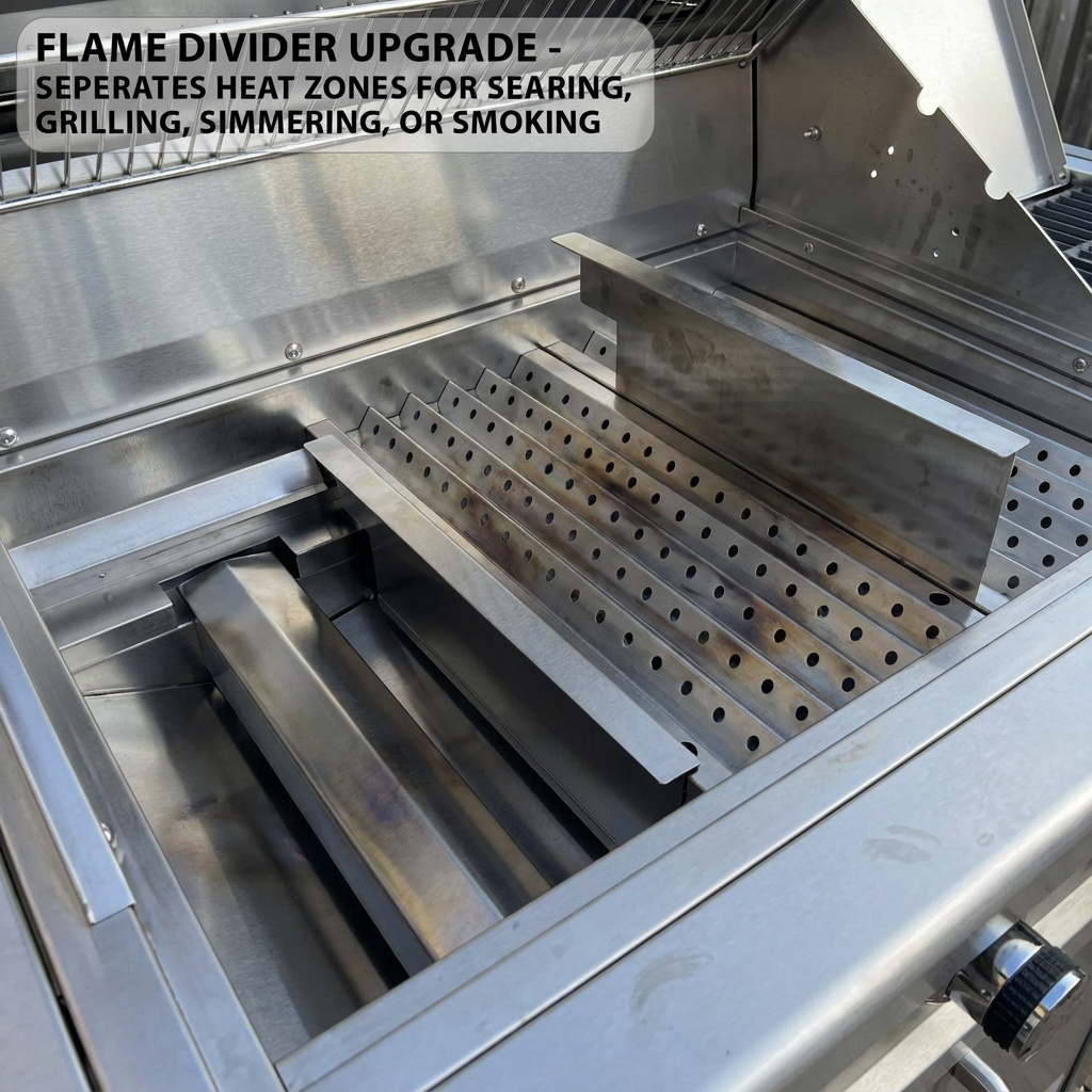 - High‑performance 11‑gauge I‑burners designed for consistent, even heat distribution